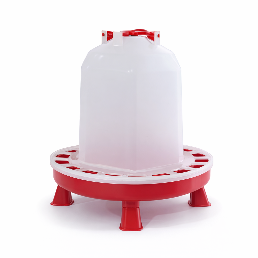 Kanatlı hayvanlar için özel olarak tasarlanan 20 Litre Kanatlı Suluğu; taşıma kulpu, gövde, tabak, tapa ve ayaktan oluşan 5 parçalı yapıya sahiptir. Asmalı gövdesinin tabağa kilitli şekilde oturması sayesinde pratik ve güvenli kullanım sunar. Tabak ve gövde birleşimindeki sıralı gözenek halkası, suyun taşmasını önleyerek maksimum tasarruf sağlar. Şeffaf gövde sayesinde su seviyesi kolayca kontrol edilebilir.